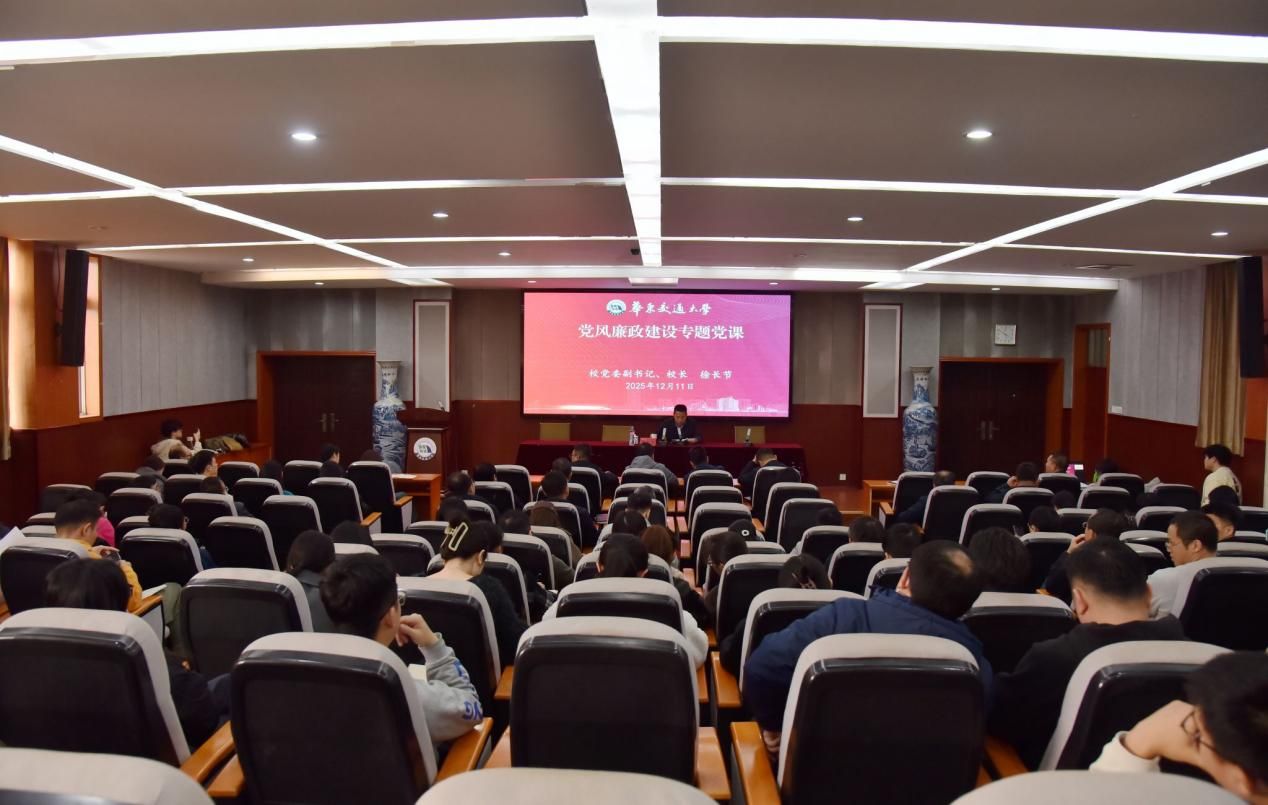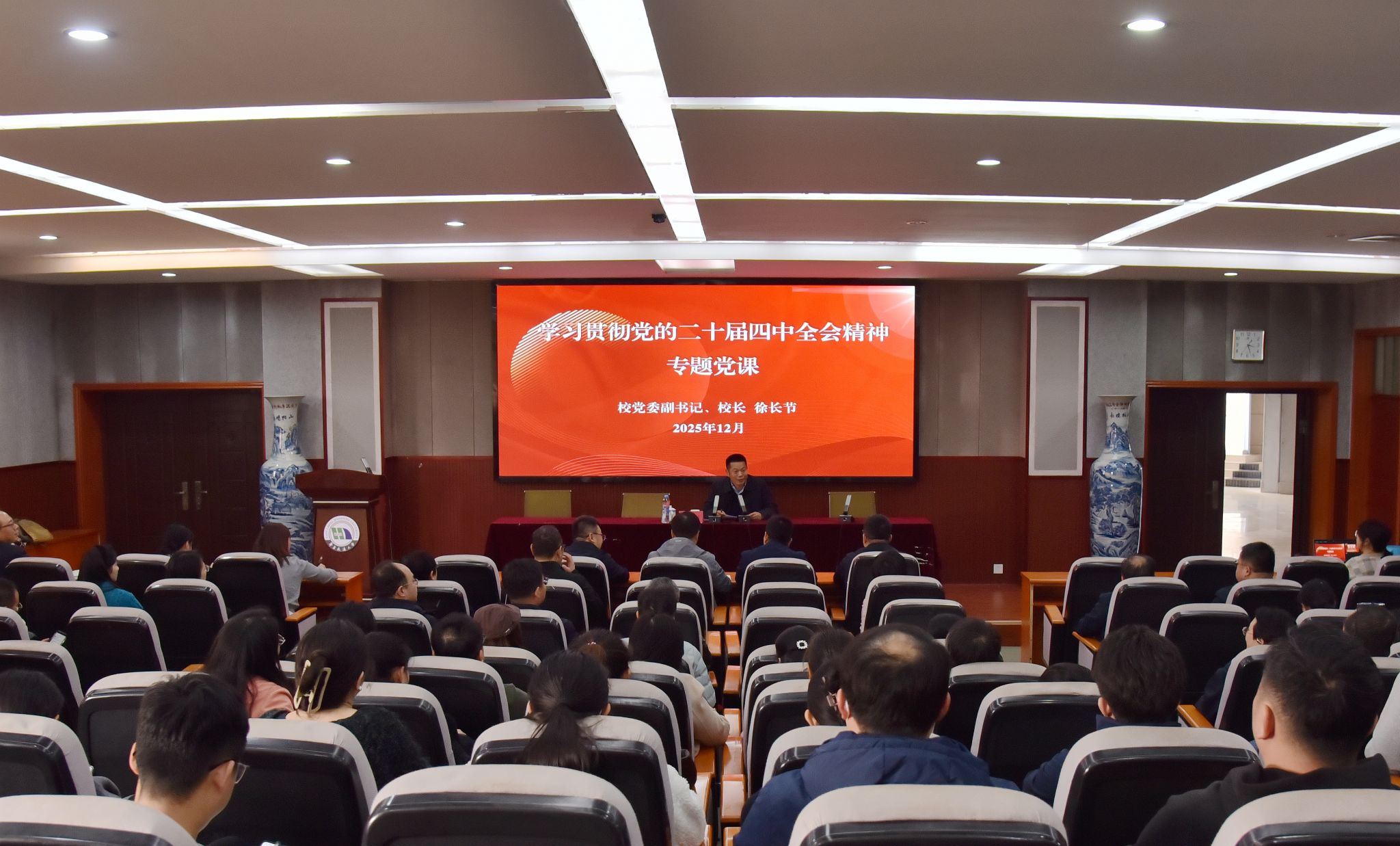 2025年12月11日下午在教9栋200报告厅,校党委副书记、校长徐长节为分管和联系单位宣讲党的二十届四中全会精神,并讲授党风廉政建设专题党课。