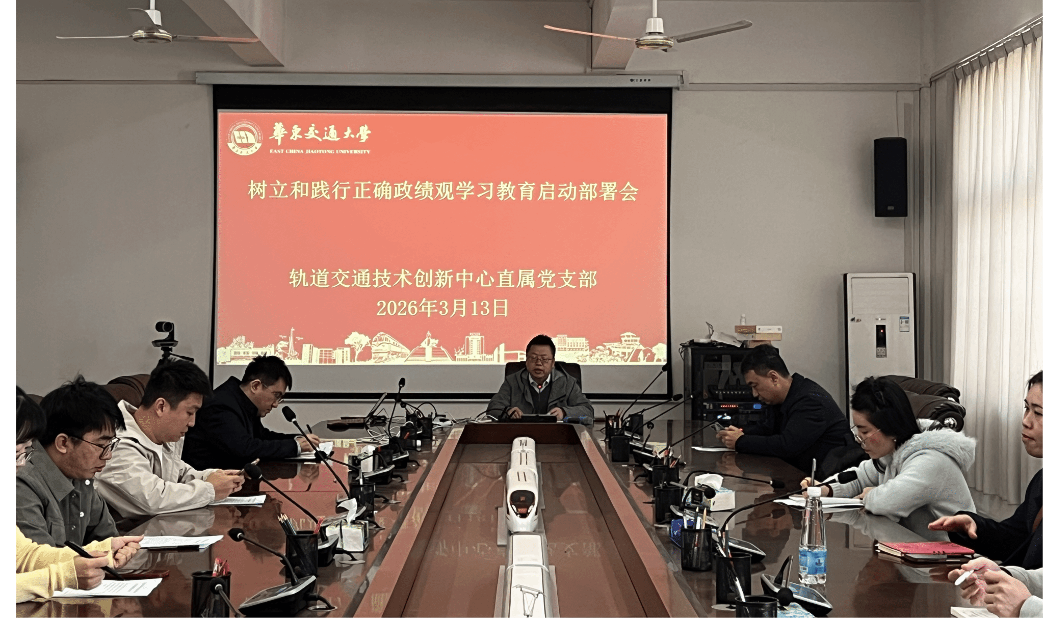 3月13日,山区士木工程安全与韧性全国重点实验室轨道交通技术创新中心直属党支部召开党员大会,传达学习习近平总书记关于树立和践行正确政绩观的重要讲话和重要指示精神,落实中央、省委及学校党委有关部署要求,对中心树立和践行正确政绩观学习教育工作进行动员部署。